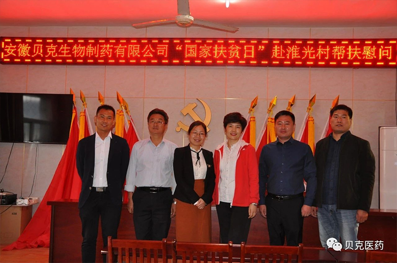 為扎實(shí)做好精準(zhǔn)扶貧工作,積極響應(yīng)全國(guó)扶貧日活動(dòng)號(hào)召,在第六個(gè)國(guó)家撫貧日這個(gè)特殊的日子里,貝克集團(tuán)副總蔡薇、貝克制藥黨支部宣傳委員劉敬春帶領(lǐng)黨支部成員及各相關(guān)部門(mén)人員深入長(zhǎng)豐縣左店鄉(xiāng)淮光村開(kāi)展精準(zhǔn)扶貧工作。