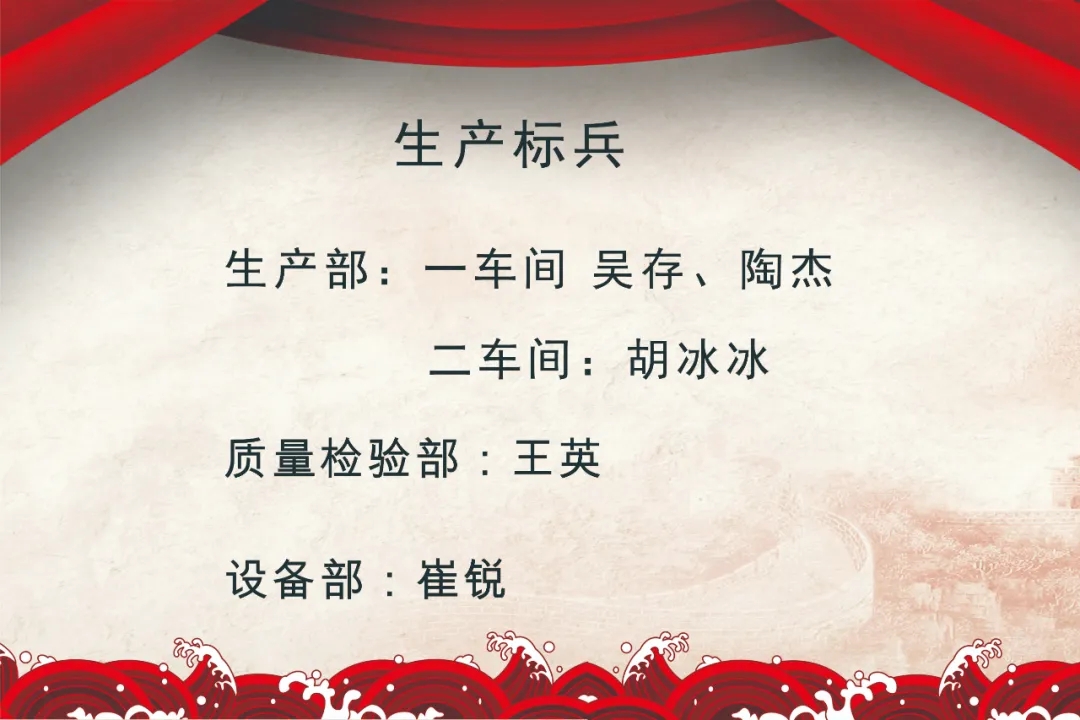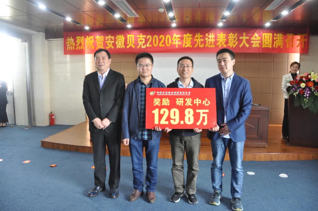 本次經(jīng)過嚴(yán)格的推選流程,公司決定授予程娟等33人“先進個人”稱號,吳存等5人“生產(chǎn)標(biāo)兵”稱號,質(zhì)量檢驗部等7部門“先進集體”稱號,貝克研發(fā)中心等4部門“團隊精英獎”和宣傳特別獎,并現(xiàn)場頒發(fā)總額176.25萬元先進團隊、個人獎金。